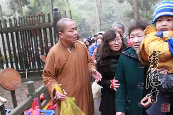 我寺监院衍空法师赞叹地向一游客竖起大拇指