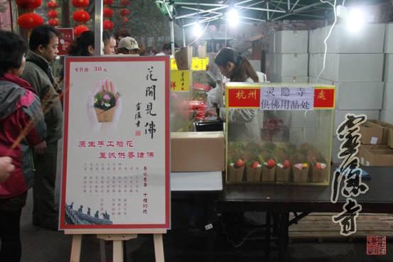 "恭敬礼佛,文明敬香""献佛三支香,文明又吉祥。烧香不在多,也不可太长。燃香表心香。止恶行善事,心诚福寿长"……进口处、天王殿前的液晶显示屏不断地滚动宣传着。"请在下方香炉烧香,请勿将燃香带入大殿"大雄宝殿前的温馨指示牌和喇叭不断地提醒大家。为方便大家,进口处右边还专门设置了"供佛用品处",倡导鲜花供佛。