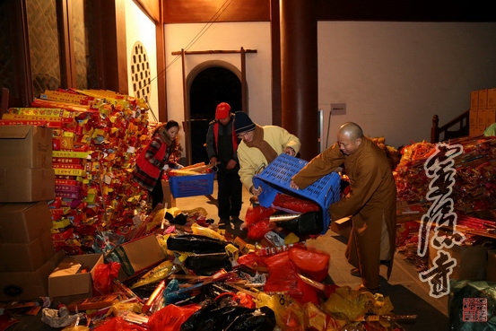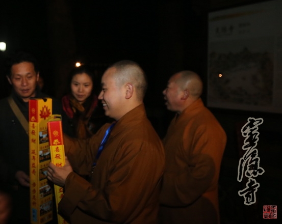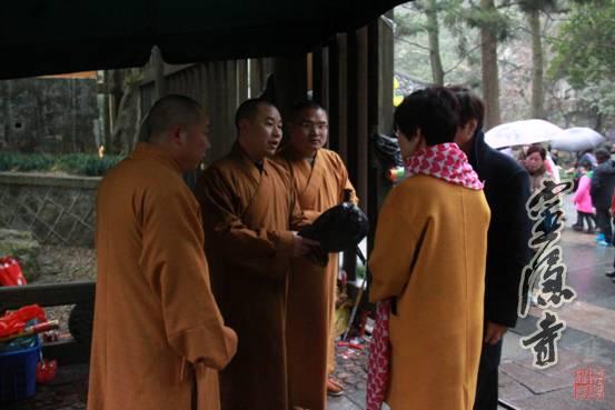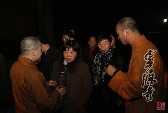 今晚10:00,又一拨前来祈福的信众、香客掀起了高潮,因北方强冷空气已经影响杭州,气温明显比白天下降了许多,灵隐寺法师们和义工们仍坚守自己的岗位,丝毫没有倦意。