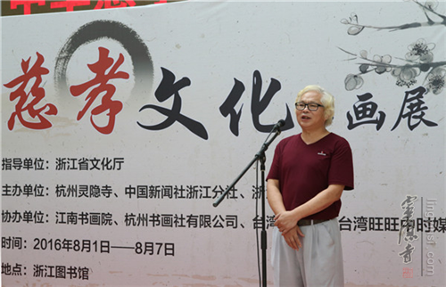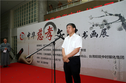 On August 1, 2016, a painting and calligraphy exhibition featuring benevolence and filial piety was co-organized at Zhejiang Library by Lingyin Temple, China News Service (Zhejiang), Zhejiang Library, Jiang Nan Artists, Hangzhou Painting and Calligraphy Service Co. Ltd. under the guidance of Zhejiang Provincial Department of Culture.