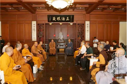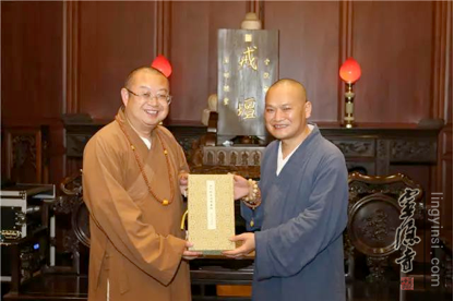 On May 19, 2017, Master Zhengci, the deputy-director of The Buddhist Association of China and director of The Buddhist Association of Hubei Province, led a group of 35 members from The Buddhist Association of Hubei Province to Lingyin Temple for a visit. The monastery supervisor Master Jueheng gave them a warm reception and introduced to them the efforts and experience of Lingyin Temple in temple management, Buddhism promotion and nurturing Buddhist talent. After the talks, Master Zhengci, on behalf on The Buddhist Association of Hubei Province, exchanged gifts with Lingyin Temple.