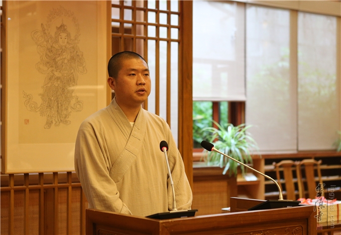 The temple supervisor of Lingyin Temple Master Kuoren delivered a speech on behalf of Abbot Ven. Guangquan at the ceremony and expressed sincere gratitude to all the guests and all the staff who were dedicated to the compilation and publishing of the book. The chief compiler of the book Fo Fa Zhi Yuan Professor Shen Hong of Zhejiang University said at the ceremony: