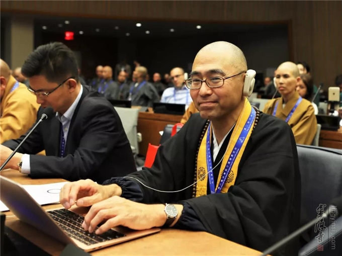 On the morning of October 12 local time, the 2019 China-US-Canada Buddhist Forum was grandly held at UN headquarters in New York, the United States. Nearly 500 people, including the religious and spiritual leaders from the Buddhist communities in China, the US and Canada and representatives from all over the world gathered together to attend the forum. The Vice-President of the Buddhist Association of China Venerable Master Yanjue, the President of the American Buddhist Confederation Venerable Master Mingyu, the President of the Buddhist Association of Canada Venerable Master Dayi all delivered a speech at the opening ceremony.