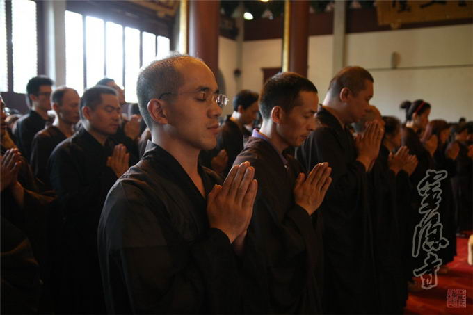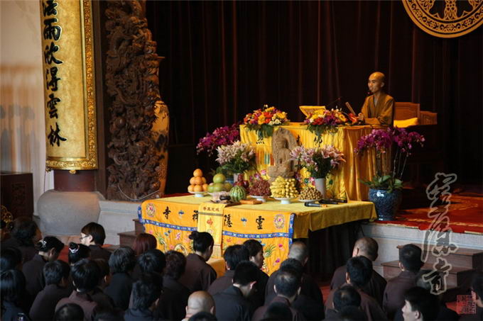 At one o’clock in the afternoon, the believers who came for the conversion gathered in the Main Hall of Lingyin Forthright Hall listening attentively to the rituals and rites of conversion--for instance, the right way to worship, to burn incense and to confess, and such--as explained by Venerables.