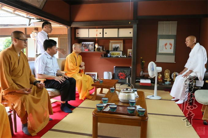 On the Morning of August 15, 2013, Venerable Guangquan visited with Takenori Shunan, Senor Master of Rinzai Zen Buddhism’s Myōshin-ji Temple, praising his hard work and contribution towards the relationship between China and Japan