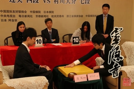 December 3, 2013 Lingyin Temple hosted the championship match of the 15th Annual Ahan Tongshan Cup Go Competition (Standard Byoyomi format) with China’s Lian Xiao victorious in end game against Japan’s Daisuke Murakawa. The event was produced with the China Association For Friendly Internation Contact, CCTV, and Hangzhou Lingyin Temple with a final showdown between Japan’s Daisuke Murakawa (7th degree) and China’s Lian Xiao (4th degree) on the Second Floor of Lingyin Temple’s Liandeng Pavilion. CCTV provided the live broadcast from the Abbot’s Quarters of Lingyin Temple with commentary by Wang Yuan (8th degree Go player) and Mao Yuheng, Coach of Lingyin Temple’s Go Association. With a studio audience of go enthusiasts and visitors, Chinese Champion Lian Xiao emerged victorious (11-4) marking the 11th consecutive victory for China. Lian Xiao honorably moved up in skill rank to 7th degree upon this victory.