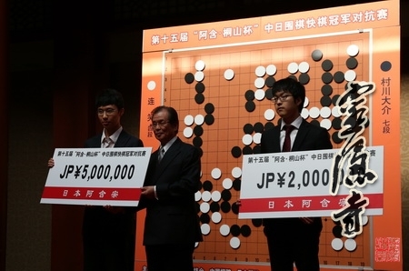 The 'Ahan Tongshan Cup' is an international go tournament originally sponsored by the Japanese Buddhist way place, Agon Shū. Since 1999, the open invitational boasted this China and Japan segment which the champions from the two respective countries showdown in a friendly match. The current co-producers for this segmented event are China Association For Friendly International Contact, CCTV, and China Qiyuan (an official agency responsible for board games and card games such as go, bridge, chess and Chinese chess affairs under the All-China Sports Federation of the People's Republic of China).
