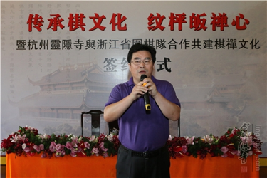 The Monastery Supervisor of Lingyin Temple Master Kuoren made a speech on behalf of Ven. Abbot Guangquan and pointed out, "Chan Buddhism represents the mainstream of Buddhist culture and shares a common cultural basis with Chinese traditional culture, especially the culture of Weiqi. The theory of Weiqi and that of Buddhism share many similarities. I hope that people can learn how to control their minds and understand the philosophy of life by playing the game of Weiqi."