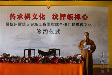 The attendees included the Chairman of Chinese Weiqi Association Wang Runan, the Party Secretary of Sports Bureau of Zhejiang Province Sun Guangming, the Director of Zhejiang Non-Olympic Game Management Center Mao Zhaoping, China’s first weiqi championship winner Ma Xiaochun, the General Secretary of Zhejiang Weiqi Association Chen Yong, persons-in-charge and instructors of subordinate community centers of Lingyin Yunlin Academy, journalists from new media of Zhejiang and over one hundred young weiqi enthusiasts. The signing ceremony was presided over by Master Huicheng of Lingyin Temple.