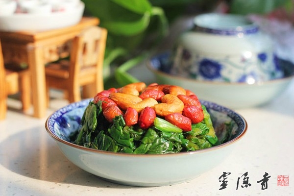 1,锅内放少许油,然后放腰果炸成金黄色捞出!再放花生米,也炸成金黄色捞出来。