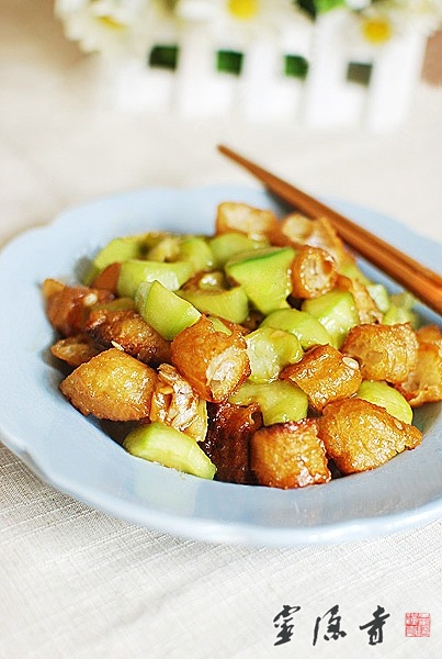 【材料】:丝瓜250g,油条100g,蚝油1大勺,水淀粉1大勺