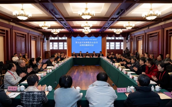 2026年1月24日,由杭州灵隐寺主办、浙江六和律师事务所协办的第九届中国佛教名山名寺法律问题研讨会在灵隐寺举行,本次研讨会的主题为“国法与教规,正确维护佛教界的合法权益”。浙江省民宗委党组成员、副主任、一级巡视员邵中,省民宗委宗教三处处长余凯,省民宗委管理一处处长叶圣松,杭州市民宗局党组成员、二级巡视员王德好,中国佛教协会副会长、浙江省佛教协会会长光泉法师,中国佛教协会副秘书长卢浔,中国佛教协会教育培训部主任秦萌,浙江省佛教协会秘书长黄年华,佛教名山名寺法律顾问、省内外法律专家学者、灵隐寺全体执事参加研讨会开幕式。▲中华全国律师协会副会长、六和律师事务所首席合伙人郑金都主持研讨会▲光泉法师致