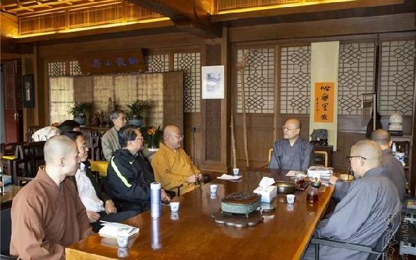 2019年3月21日,河北省佛教协会副会长、张家口市云泉禅寺方丈果岚法师一行到访杭州灵隐寺,受到杭州灵隐寺方丈光泉法师的热情接待,双方就佛教弘法建设和寺院管理等方面进行深入交流。 果岚法师在交流时表示:近年来,中国佛教界许多大型活动都由杭州佛教协会、杭州灵隐寺协办或承办,取得了丰硕的成果,灵隐寺为中国佛教事业发展,作出了长足的探索,取得了宝贵的成功经验。此次杭州之行,希望通过向杭州佛教界取经,学习先进的管理经验,提升张家口市佛教界综合管理水平。 光泉法师在会谈时首先介绍了杭州佛教协会的管理框架,并详细介绍了灵隐寺执事会议制度的开展情况。在谈及管理模式时他表示:灵