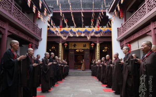 2018年5月5日(农历三月二十),"戊戌春灵隐寺三坛大戒法会"进入第十一天。时逢立夏节气,杭城普降甘露,洗净云林纤尘,灵鹫奇秀更显清凉。当日,福建佛学院教务长寂相法师在药师殿对新戒弟子逐条讲解《沙弥律仪》威仪门的内容。三百多名戒子从早上开始直至晚上,认真学习"二十四威仪"。戊戌春灵隐寺三坛大戒法会进入第十一天 出家并不是离开世间。"佛法在世间,不离世间觉",佛教以慈悲济世,普渡众生为宗旨,这就决定了出家人必然要与世俗接