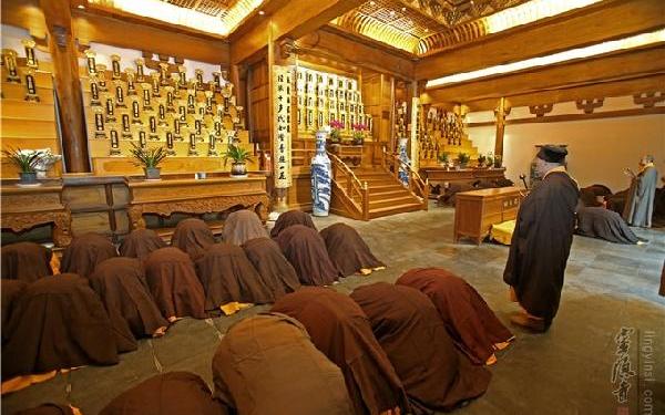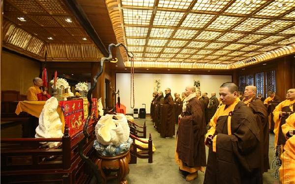 大众祖师殿礼祖排班 2018年1月6日,灵隐寺冬季禅七正式起七,下午二时灵隐寺常住法师,在祖师殿排班至方丈室告生死假,从今日起,放下万缘,进入灵隐寺禅堂,用功参学,以求克期取证。灵隐寺住持光泉大和尚为大众法师开示,勉励身心安住,精进参学。 光泉大和尚开示 光泉大和尚在开示时讲到:"灵隐寺一年弘法活动众多,寺院接待十方信众频繁,岁末大众难得有时间走进禅堂集中用功。丛林有冬参夏学的传统,进入禅堂便要万缘放下,身心安住,用功办道。"光泉大和尚叮嘱大众,禅堂是选佛场,护法龙天加被垂护,大众用功即是自受益