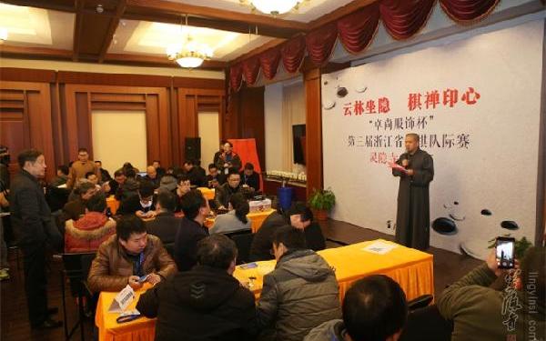 第三届浙江省围棋队际赛在杭州灵隐寺拉开帷幕 2017年12月23日以"棋禅印心"为宗旨的"卓尚服饰杯"第三届浙江省围棋队际赛在杭州灵隐寺拉开帷幕,本次活动吸引十支围棋队,近两百人参加对弈手谈。灵隐寺监院廓忍法师在开幕式上致欢迎词比赛现场对弈交流棋友分析讨论对弈局势 在为期两天的围棋交流活动中,各围棋队相互切磋,以棋会友,气氛友好而热烈。灵隐寺云林围棋队本着"见棋不是棋"的参与理念,努力做到"眼中无棋势,心中无胜败",把每一个棋局作为参学下手处,把每一次对弈作为一次慈悲的接引,于起心动念处觉察细微
