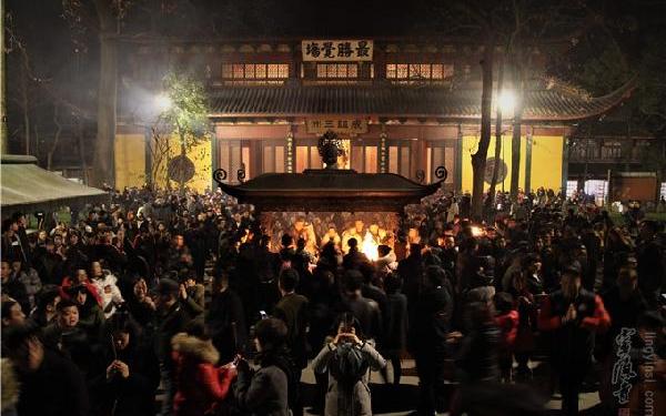灵隐寺跨年的人潮 2017年12月31日,2017年的最后一天,杭州灵隐寺信众如织,大众与亲人好友相约千年古刹,欢度新年,祈福吉祥,共同迎接2018年的到来。跨年倒计时大众欢喜的笑脸 进入凌晨的倒计时环节,万众齐声,以高昂的热情,迎接新一年的到来,一时灵隐古刹祝福声此起彼伏,身边的陌生人,电话另一边的亲人,视频连线的家人,都沐浴在节日的喜悦里,都沉浸在节日的吉祥祝福中。充满节日气氛的跨年夜 以三支清香一片诚心做美好祈愿 合十祈愿2018 许下美好心愿 祈愿吉祥安康 人群中有专程从外地赶来的灵隐寺跨年