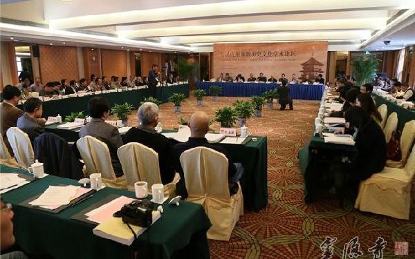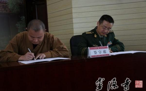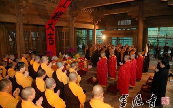 浙江省委统战部副部长、省民宗委主任冯志礼将杭州灵隐寺的标识牌授予光泉大和尚