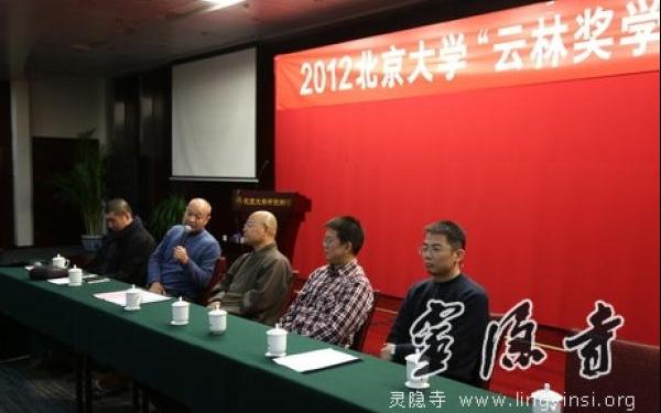 光泉大和尚在颁奖仪式后讲话。他说,灵隐寺在北京大学设立云林奖学奖教金,旨在鼓励师生们
