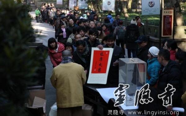 2013年1月1月,农历十一月二十,为喜迎新年的到来,并为广大杭州市民、信众和游人送上来自佛门的新年祝福,我寺方丈光泉大和尚亲笔题写了"巳年大吉"四字,并制成精美的新年挂历向大众结缘赠送。