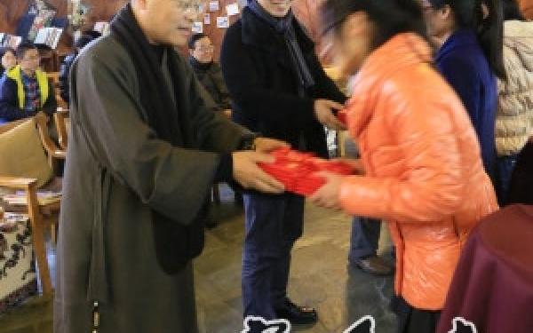 我寺方丈光泉大和尚为获得"云林教育奖励基金"的学生颁奖