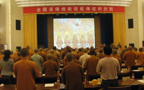 近日,全国汉传佛教规范传戒研讨班在我省舟山中国佛学院普陀山学院举办。国宗局副局长蒋坚永、中国佛教协会会长传印长老等出席开班典礼并作重要讲话。省政协副主席、省委统战部部长汤黎路、省民宗委主任王毅、国宗局四司司长吕晋光、省民宗委副主任陈振华等出席了开班典礼,王毅主任致辞并预祝研讨班取得圆满成功。中国佛协、各省级佛协负责人、传戒寺院负责人和开堂师代表100余人参加了研讨班。