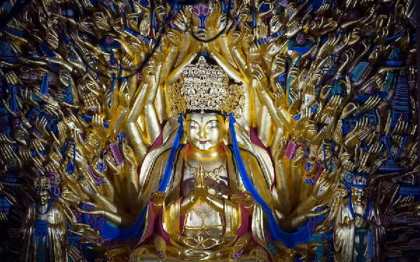"观世音"是菩萨的名号,这个"观世音菩萨"的名字是鸠摩罗什法师翻译的。玄奘大师是怎么翻译的呢?翻译为"观自在"。他俩的翻译一个是重于意译,一个是重于直译。我们先解释一下,观世音,这个名字的由来。 在《普门品》当中,有这样一段经文:"佛告无尽意菩萨:‘善男子,若有无量百千万亿众生,受诸苦恼,闻是观世音菩萨,一心称名,观世音菩萨即时观其音声,皆得解脱。’"这段经文大家都很熟悉。观世音菩萨之所以被称为观世音,就是因为他听闻众生称名的音声,寻声救苦而得来的。观世音菩萨大慈大悲、