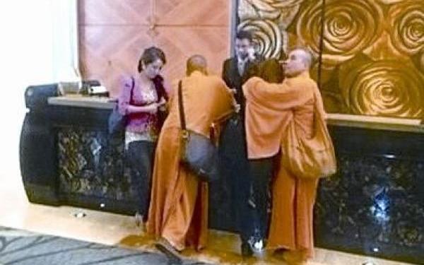 没有龙虾、鲍鱼,没有推杯换盏,也没有司仪活跃气氛。昨日傍晚,在厦门如是酒店,一对新人挽着手迈向结婚"佛堂",在六位法师引导下,他们按礼制走完了婚礼所有程序。此举开厦门正式佛化婚礼先河。