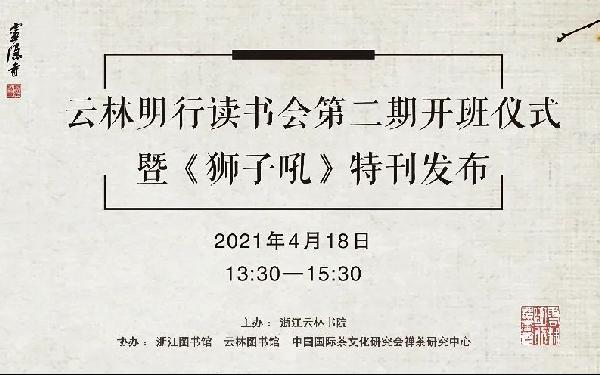 杭城春光明媚,寺内游人如织。2021年4月18日下午,“云林明行读书会第二期开班仪式暨《狮子吼》读书笔记特刊发布”活动在灵隐寺云中轩举行,独在一隅的云中轩内,飘散着别样的书香。从各地赶来的70余位文化爱好者参与了本次活动,包括明行读书会一期、二期成员代表、浙江图书馆读者和西湖区兰里阅读文化发展中心的朋友们。浙江工业大学之江学院建筑系主任冯静,杭州西湖世界文化遗产监测管理中心宣教与研究部张倩,浙江图书馆乔静仙、劳月,云林书院朱素英,灵隐寺志祥法师、慧澄法师、智法法师等出席了本次活动。活动伊始,朱素英老师代表云林书院介绍了云林明行读书会的缘起及第二期阅读计划,宣布读书会第二期正式开班。《狮子吼》读