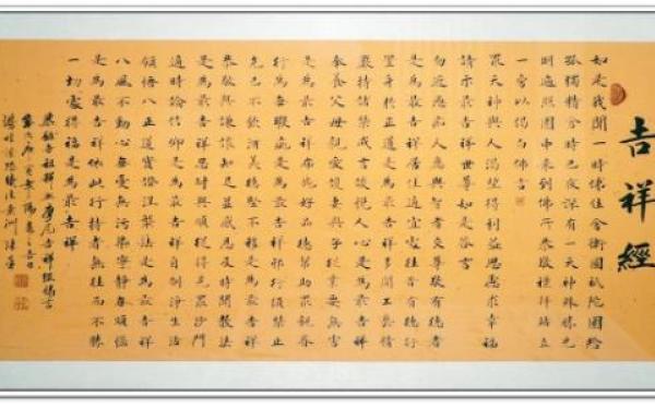 《吉祥经》李荣熙译 如是我闻,一时,佛住舍卫国祗陀园给孤独精舍。时已深夜,有一天神殊胜光明遍照园中,来至佛所,恭敬礼拜,站立一旁,以偈白佛言:“众天神与人,渴望得利益,思虑求幸福,请示最吉祥。” 世尊如是答言:勿近愚痴人,应与智者交,尊敬有德者,是为最吉祥!居住适宜处,往昔有德行,置身于正道,是为最吉祥!多闻工艺精,严持诸禁戒,言谈悦人心,是为最吉祥!奉养父母亲,爱护妻与子,从业要无害,是为最吉祥!布施好品德,帮助众亲眷,行为无瑕疵,是为最吉祥!邪行须禁止,克己不饮酒,美德坚不移,是为最吉祥!恭敬与谦让,知足并感恩,及时闻教法,是为最吉祥!忍耐与顺从,得见众沙门,适时论信仰,是为最吉祥!自
