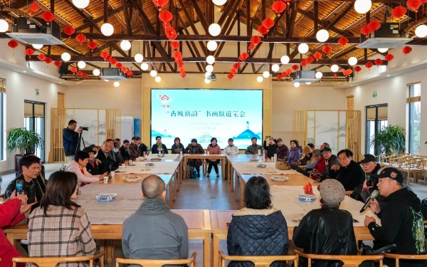 黛青瓦片与淅沥烟雨,描绘出江南缱绻的画卷,严州画院正坐落于建德梅城镇的严州古城之中。3月24日,云林书画联谊会30余位街道书画爱好者在云林书院的组织下前往建德,与严州画院开展了一场名为“古城新韵”的联谊笔会,共话中华传统书画艺术,书院艺术顾问卢家华、苏雪峰老师出席了本次活动。严州画院秘书长陈捷、副院长叶炜向云林书画联谊会表示欢迎并致辞。随后,严州画院陈捷秘书长与云林书院朱素英老师分别简要介绍了严州画院、云林书院的基本情况,希望通过此次联谊笔会活动,能够让大家体会到古严州的文化底蕴,展示书画人的情怀与素养,加强大杭州范围的文化走亲。笔会中,书画家与爱好者们创作热情高涨、神情专注,一幅幅笔酣墨饱的