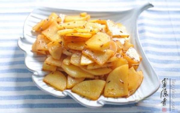 用料:土豆、油、盐、生抽、糖、水做法:单纯的土豆片,不用加别的只略放些盐和生抽,原汁原味的土豆就很好吃了!1、土豆去皮,切片,然后用清水冲洗一下。2、炒锅大火烧热之后下油,趁油还没烧热把土豆片放下去快速翻炒,让每一片上都裹上油。3、依个人口味烹入盐、生抽,可以放少许糖提味儿。4、不断翻炒土豆。5、土豆快要熟的时候加入少许水,盖上锅盖中小火稍微闷一下,土豆片口感会比较软绵。6、出锅装盘。7、这盘放了一点孜然,和红椒粉上色,不加这两样也照样好吃!