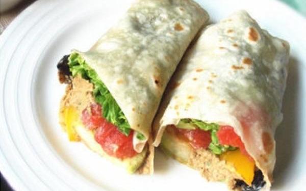 【主料】:小麦面粉、茄子、生菜、西葫芦、黄椒、鹰嘴豆、樱桃番茄【做法】:1、鹰嘴豆泡发加稍盖过的水,用电饭煲普通米饭铛做熟;熟鹰嘴豆、植物油约1茶匙、芝麻酱2汤匙、两个柠檬的汁、盐少许、豆酱1汤匙放入料理机内。2、加入干欧芹碎1茶匙和适量水;用料理机中档打成粗豆泥。3、用开水将一半面粉用筷子和成烫面晾冷,一半面粉用冷水和成冷水面团;将晾冷的烫面团和冷水面和匀;面团醒10分钟,切成四个剂,用手压成小圆面剂。4、案板稍涂油放小圆面剂,在小圆面剂上涂多些的植物油;盖上另一个小圆面剂,也在面剂的顶上面涂一点油,用手均匀压大些;用擀面杖左右上下,轻轻擀开变大变薄.5、用擀面杖挂着擀好的面皮轻轻放入稍预热