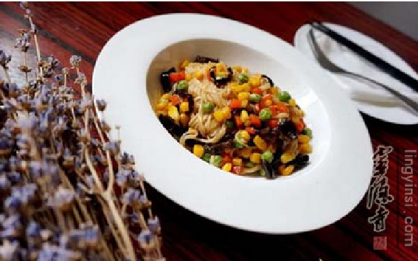 原料:家常面条、玉米、胡萝卜、青豆、木耳、生抽、盐、油、素耗油做法:1、先把需要的配料准备好,胡萝卜切丁、木耳泡发切丝。2、锅中注入清水烧沸腾,下面条煮至半熟(5分熟),捞出备用。3、热锅热油放入胡萝卜、青豆翻炒1分钟,再下玉米、木耳翻炒1分钟。锅中加半小碗水、盐、生抽、素耗油搅拌均匀。4、然后倒入捞出的面条,盖上锅盖焖2分钟左右。5、揭开盖子用筷子划动面条,使其与配料混合均匀,然后大火收汁即可。