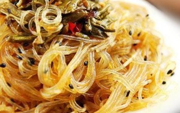 【主料】:粉丝、酸豆角【做法】:1、粉丝用冷水泡软,沥干揽断备用。2、酸豆角根据喜好添加。3、锅中倒入适量的油,放入豆豉酱。4、放入适量的酸豆角煸炒出香味。5、在放入泡软的粉丝一起翻炒。6、淋上生抽,加入白糖和盐,加入少许清水,翻炒均匀,待汤汁收干,撒入黑芝麻拌匀即可出锅。