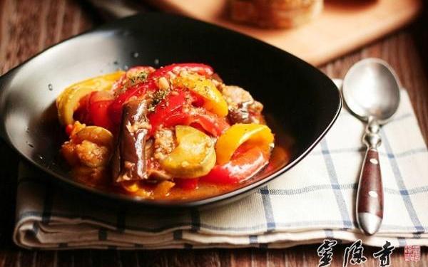 1.茄子切条,细的对半切,粗的切4半。红,黄彩椒去籽,切粗条。