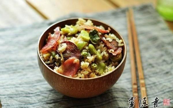 【材料】大米(也可加入少许糯米)蚕豆 豌豆 素肠 姜