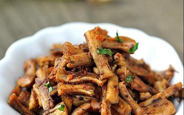香菇根(也就是香菇脚) 150g、生抽 2茶匙(10ml)、盐 一小撮、孜然粉 1.5小勺(约2g)、