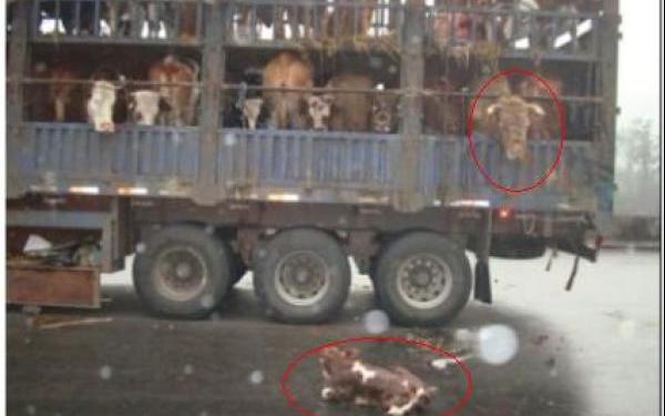 2012年3月8日,浙闽高速路上,一母牛产仔,好心的温州交警帮忙,让在变成韩国烧烤前的母牛了却了生前的夙愿。她从车上探出头,望着跌落在公路上的自此骨肉分离、生死两界的幼崽。不知道她是否会流泪,但却把最大的伤感留给了善良的人类。