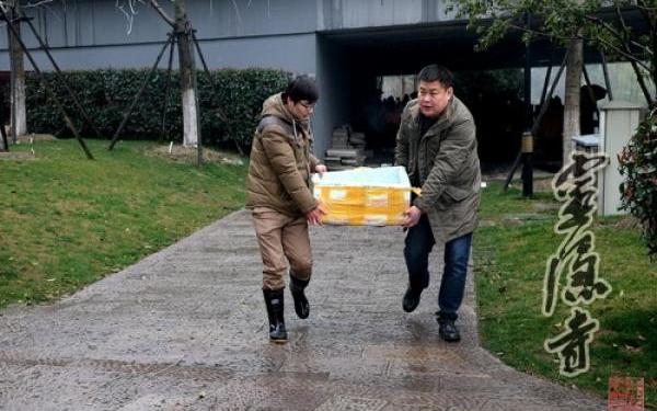 乌龟见有人抓它,本能地将头偏来偏去躲闪。李国华好不容易才抓住乌龟。