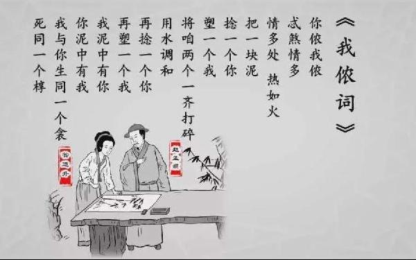 你浓我浓,忒煞情多;情多处,热如火;把一块泥,捏一个你,塑一个我。将咱两个,一起打破,用水调和;再捏一个你,再塑一个我。我泥中有你,你泥中有我。我与你生同一个衾,死同一个椁。——元·管道升很多人可能都听过这首《我侬词》,或许也曾被其中的真切情意打动。管道升是元代著名的女书法家、画家、诗词创作家,她的丈夫赵孟頫是元朝官员,也是大书法家、画家、诗人。这首词的背后是关于他们夫妻二人的一个广为流传的故事。赵孟頫身在官场,外境诱惑颇多,难免欲心偶动。有一次想纳妾,但又不敢启齿,就写了一词送给夫人:“我学士,尔夫人。岂不闻:陶学士有桃叶、桃根,苏学士有朝云、暮云。我便多娶几个吴姬、越女,也无过分,你年纪已
