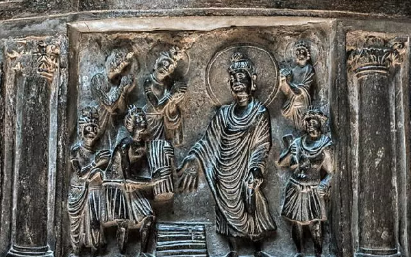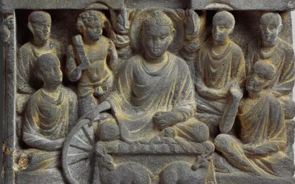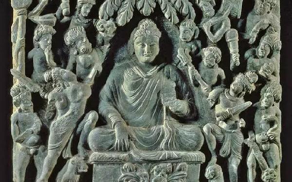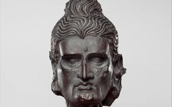 3-5世纪 古犍陀罗地区造像片岩雕刻规格:13.3 x 8.6 x 8.3 cm美国大都会艺术博物馆收藏此像是3-5世纪古巴基斯坦犍陀罗地区佛像珍品;此像表现的是释迦牟尼佛未成佛前在雪山六年苦行的形貌;悉达多太子头饰螺发,宽额凸起,满脸虬须,表情刚毅庄严。双眼亦因缺少营养已经完全抠进脸庞,两只眼眶外露,却仍然炯炯有神。鼻梁直挺,双唇紧闭,似在沉思冥想。此像生动地刻画出了经文中“脊骨连露如筇竹节”的六年雪山苦行形貌。此像在完美表达了苦行形象的同时,又很好地体现了佛陀的庄严法相。虽然是在苦修中,但佛陀没有愁眉苦脸,而是略带微笑。虽然双颊下陷,但五官清秀,神态慈悲安详,造型写实传神,极富艺术感染力。