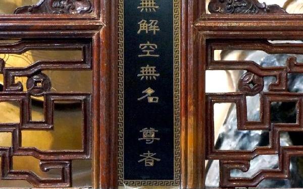 驾羊超出风火宅,跨兔求度生死河。者乘如来初方便,自彻海漩三昧底。三乘如来悲愿力,身如光影现十方。持经不染文字相,是名第一离欲者。——宋 黄庭坚《罗汉赞》灵隐寺五百罗汉碑刻第七十三尊至第八十八尊灵隐寺五百罗汉堂第捌拾肆尊解空无名尊者灵隐寺五百罗汉堂解空无名尊者铜像诗 偈时运独钟无可非,功成名就莫迟疑。今生修成罗汉果,桂子兰孙足欣慰。偈解眼下时运正好,成就功名的时机已到,所以不要迟疑。今生你若能修得罗汉正果超然解脱,那么后世子孙也会欢欣满足。此偈教导我们,时运大好,功名成就尽在眼前,应多思他人所思,心存慈悲,多帮助他人,如此自然会福及子孙。尊者法相尊者法相所现为傲然静坐,身披袈裟,右脚着地,左腿架