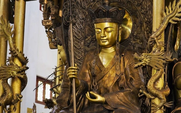 地藏大慈悲 誓愿永无尽期所化成佛数难思 犹秉声闻仪直待狱空生度尽 方肯示证菩提恳祈冥显施恩资 海会预莲池地藏菩萨是谁?地藏菩萨,为梵文Ksitigarbha的意译。为什么叫“地藏”呢?因为“地”能生长万物,“藏”即含藏,无量无边的宝藏都在地里含藏着,任人去发掘。地藏菩萨誓愿深广,为众生累劫修行,其威德神力就像大地一样,能生长一切功德宝藏。因此《地藏十轮经》谓其:“安忍不动犹如大地,静虑深密犹如秘藏。”若能信仰、恭敬、供养地藏菩萨,并且按照菩萨开示的法门去修行,就可以得到其中的宝藏。例如《地藏经》的最后一品中,总结为二十八种利益:若未来世,有善男子、善女人,见地藏形像,及闻此经,乃至读诵