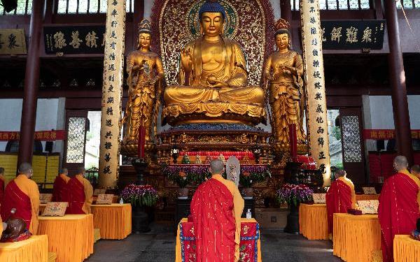 灵隐寺于每年结夏安居期间,举办华严法会,以九旬安居之期,讽诵《华严》大经,普利人天。许多学佛的居士都曾听过这样一种说法:不读《华严经》,不知佛富贵。那么这部被誉为“经中之王”的大经究竟殊胜在何处呢?缘起殊胜——释尊随自意语,直畅本怀释迦牟尼佛出世的唯一目标,是为了度众生成佛。所以《法华经》上说:佛以一大事因缘故出现于世。为欲令诸众生,开、示、悟、入佛之知见故,出现于世。因此,人、天乘和声闻、缘觉的小乘佛教,皆是不得已应机而说的方便之谈,也就是所谓“随他意语”。而《华严经》则不同,是真正成佛的教法,乃是“一乘圆顿”的大教,是“随自意语”。什么叫做“随自意语”呢?就是释迦牟尼佛菩提树下最初成佛的时