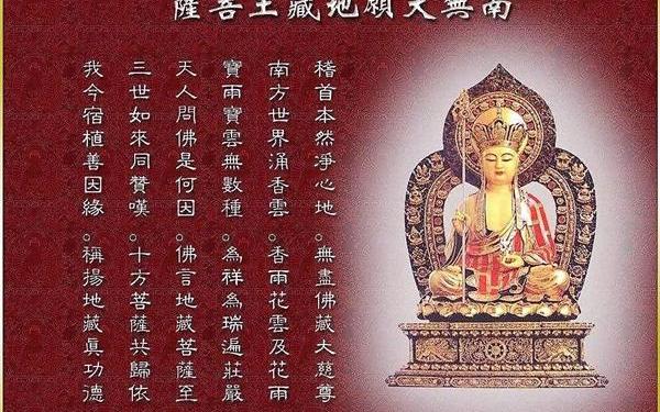 地藏菩萨赞偈 稽首本然净心地 无尽佛藏大慈尊 南方世界涌香云 香雨花云及花雨 宝雨宝云无数种 为祥为瑞遍庄严 天人问佛是何因 佛言地藏菩萨至 三世如来同赞叹 十方菩萨共皈依 我今宿植善因缘 称扬地藏真功德 慈因积善誓救众生 手中金锡 震开地狱之门 掌上明珠 光摄大千世界 智慧音里 吉祥云中 为阎浮提苦众生 做大证明功德主 大悲 大愿 大圣 大慈 本尊地藏菩萨摩诃萨 今天是庚子农历七月初一,很多居士都发愿每天诵读《地藏菩萨本愿经》。有人问:为什么农历七月应持诵《地藏经》? 农历七月,在中国是夏季最炎热的时候,也叫孟秋,兰月等。但是在中国民间,农历七月俗称鬼月。传