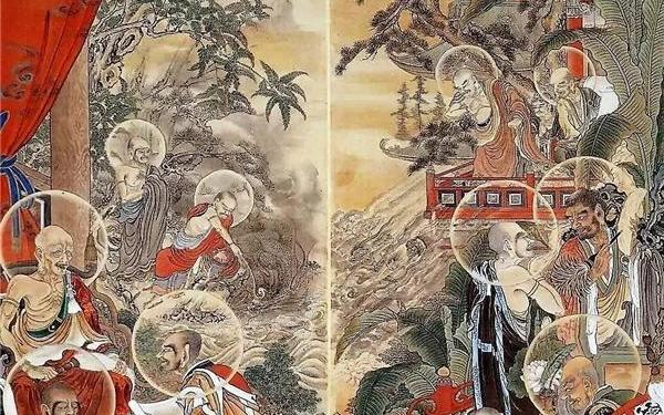 禅宗自初祖菩提达摩,经二祖慧可、三祖僧璨、四祖道信、五祖弘忍之后,分为六祖慧能的南宗禅及神秀的北宗禅。此中,北宗禅主张渐悟;南宗禅主张顿悟,在中唐以后渐兴,成为禅宗主流。南宗的禅法到六祖慧能之后,分别衍生出了“五家七宗”,即临济宗、曹洞宗、沩仰宗、云门宗、法眼宗等五家,加上由临济宗分出的黄龙派和杨岐派,合称为七宗。 祖师悟道 禅门五家诞生于唐王朝衰亡和五代十国这段治乱频仍的时期。其间,百丈祖师门下率先开创了沩仰宗和临济宗,药山祖师门下创立了曹洞宗。到了五代十国那个战火纷飞的岁月,马祖一脉进入了发展阶段的休整期,而石头一脉却异常活跃,雪峰大师门下先后创建了云门宗和法眼宗。 过去僧人