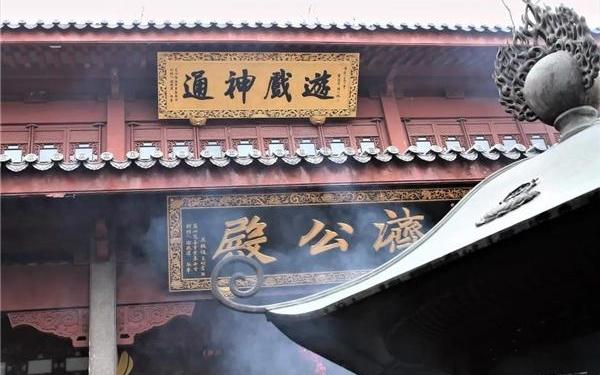 济公殿第十五幅壁画——佛偈四海传十五、佛偈四海传 降龙罗汉于人间善德圆满,写下一首辞世偈:六十年来狼籍,东壁打到西壁。如今收拾归来,依旧水连天碧。 于是便合眼垂眉圆寂去了。众善拈香礼拜,各诉说济公平日感应神通,不胜感叹。出丧之日,鼓乐喧天,送虎跑山,骨灰入塔安放,罗汉便乘龙而去。 道济(1150~1209) 宋代临济宗杨岐派高僧,浙江天台人,俗家姓李。道济禅师诞生满月之后,有天台国清寺老方丈来访,为新生儿起名修缘。十八岁时因为父母双亡,落发于灵隐寺,拜圆悟克勤禅师的法嗣瞎堂慧远禅师为师并嗣其法。宋宁宗嘉定二年五月十六日,道济禅师示寂于虎跑寺,世寿六十七十三,葬于虎跑。临终曾书偈云:“六十