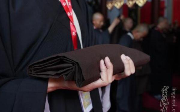 善哉解脱服,无上福田衣,我今顶戴受,世世不舍离。 三衣是依佛教戒律规定,比丘可拥有的三种衣服。 一僧伽梨,即大衣、重衣、杂碎衣、高胜衣。为正装衣,是上街托钵或奉召入王宫时所穿之衣,由九条至二十五条布片缝制而成,又称九条衣。 二郁多罗僧,即上衣、中价衣,又称入众衣。为礼拜、听讲、布萨时所穿,由七条布片缝制而成,又称七条衣。 三安陀会,安陀会,即中著衣、中宿衣、内衣、五条衣,为日常工作时或就寝时所穿著之贴身衣。 三衣依规定须使用坏色布料制成,故又称为袈裟。坏色是指袈裟应避免使用青黄赤白黑这五种正色,有三种坏色即:青坏色、黑坏色、木兰坏色。佛陀为使僧侣与外道有所区别,以及避免对所穿衣服生起