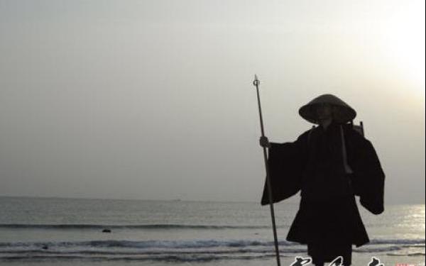 他们来到一条又宽又大的河边,大师面对河水冥思片刻,便在岸边架起一堆柴。天色暗了,柴堆被点燃,火苗愈来